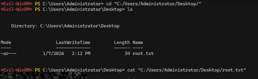 Having obtained valid credentials, the next step is to attempt remote access. We do this by connecting with Evil-WinRM using the discovered credentials.
