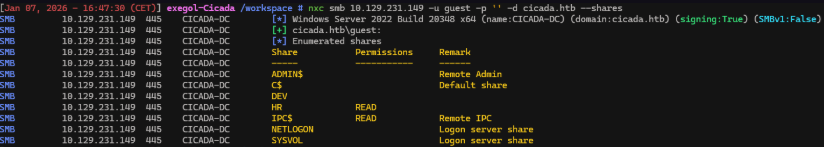 nxc smb 10.129.231.149 -u guest -p '' -d cicada.htb --shares