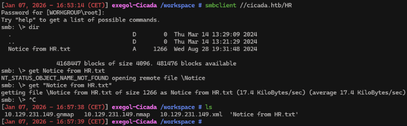 smbclient //cicada.htb/HR