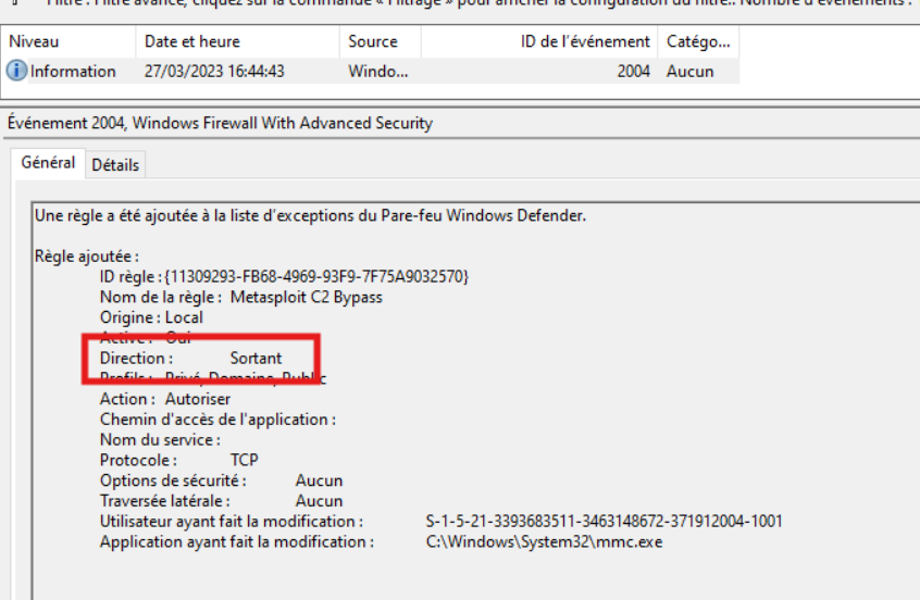 <Select Path="file://C:\Users\Bageto\Desktop\logjammer\Event-Logs\Windows Firewall-Firewall.evtx">*[EventData[Data[@Name='RuleName'] = "Metasploit C2 Bypass"]]</Select>