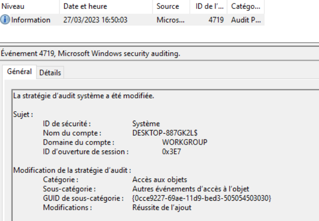 So filter on 4719 in security.evtx