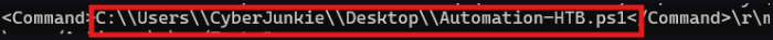 Answer : C:\Users\CyberJunkie\Desktop\Automation-HTB.ps1