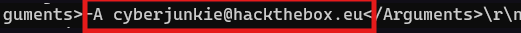 Answer : -A cyberjunkie@hackthebox[.]eu